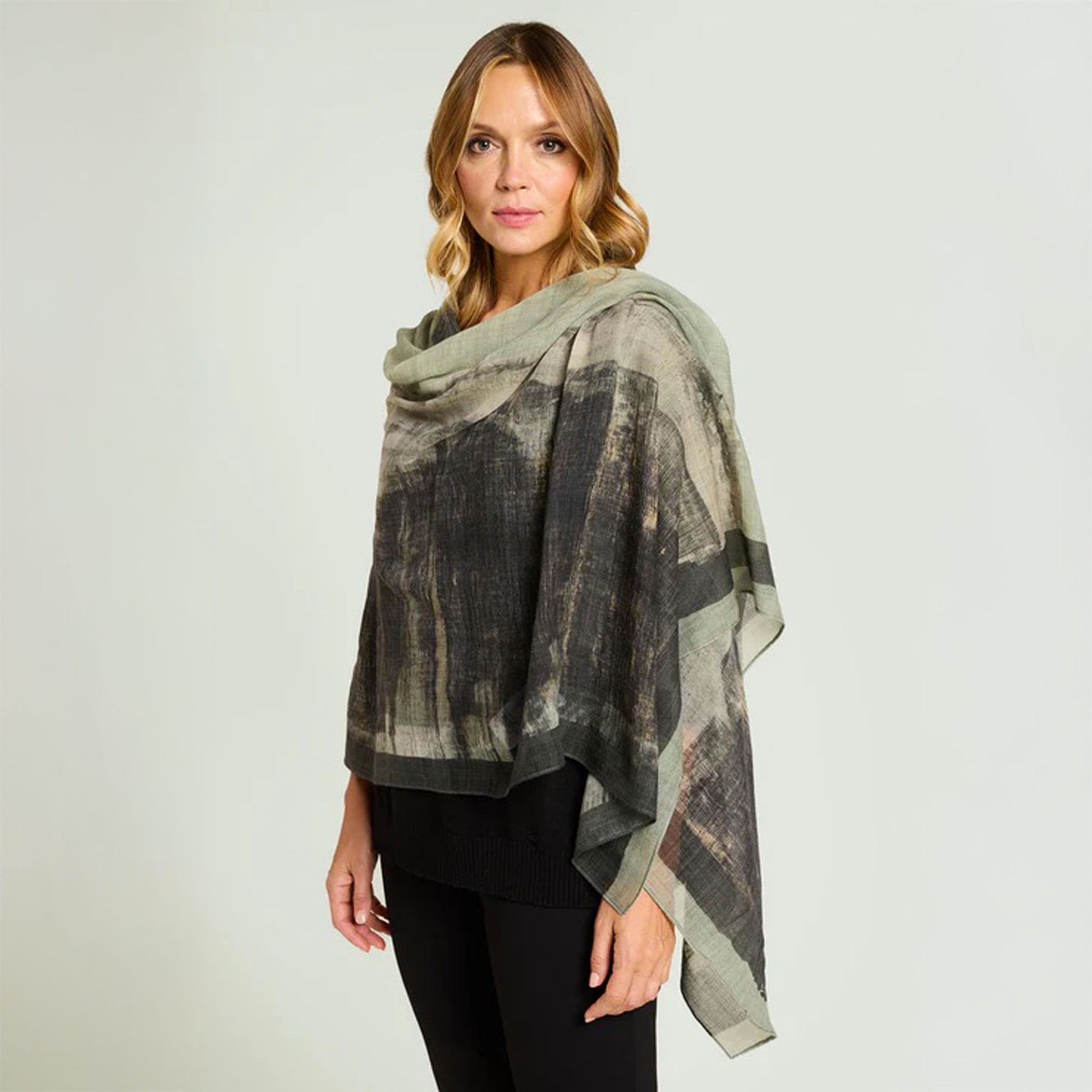 Sciarpa fantasia in tessuto di pura lana, cm.80 x 190. Un omaggio all'arte contemporanea, con una stampa pittorica dal tratto grafico.