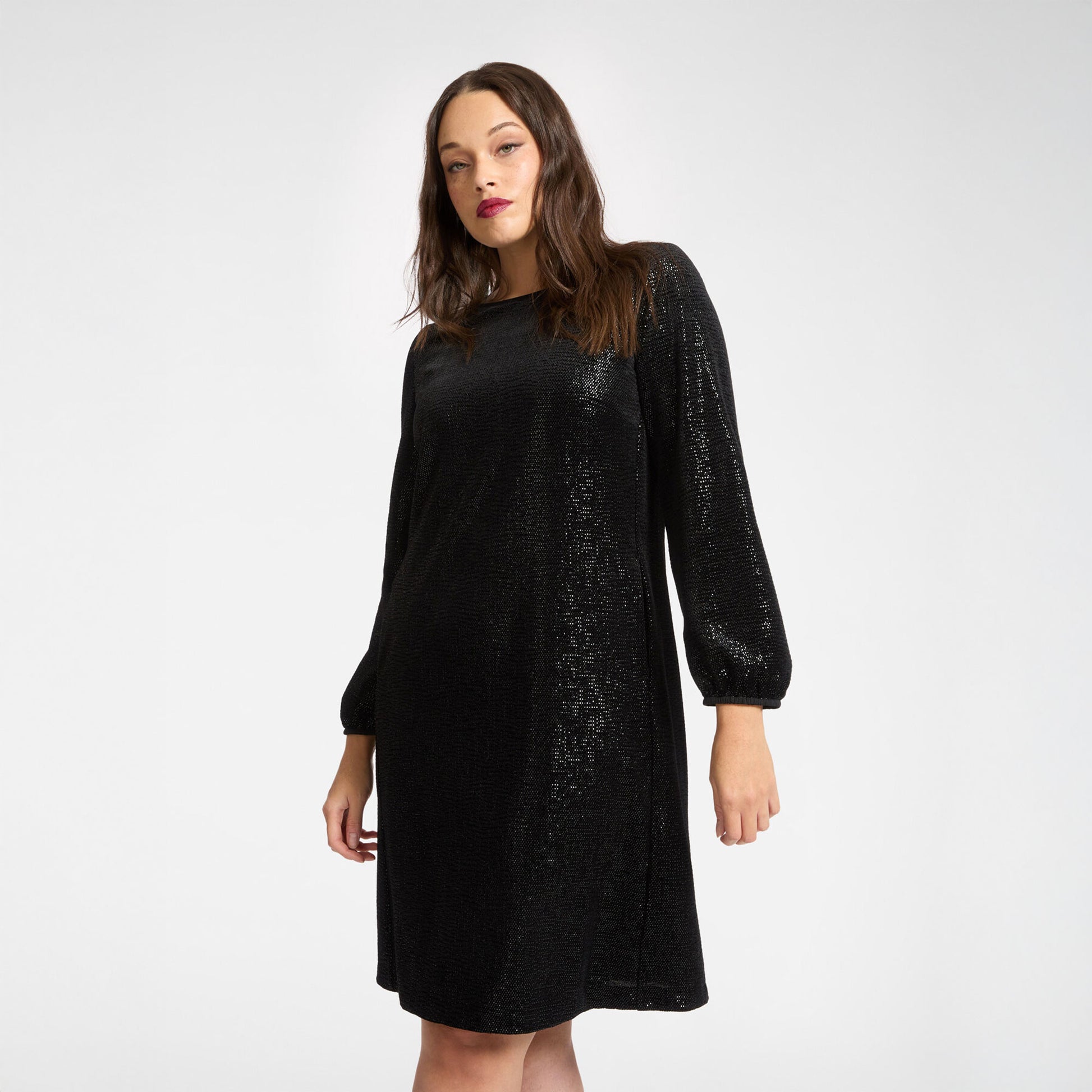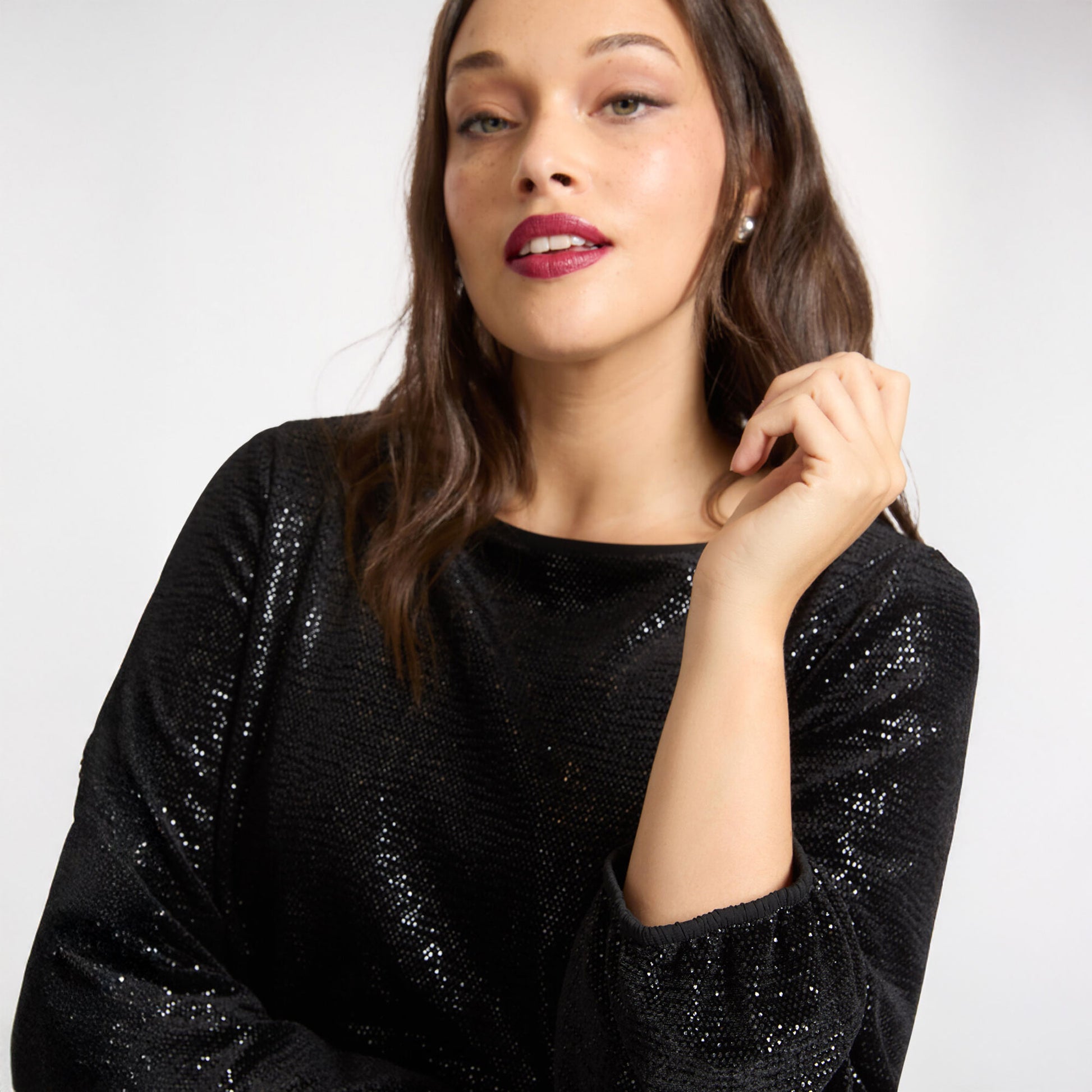 Scollo a barchetta, maniche con elastico al fondo, fodera in tinta