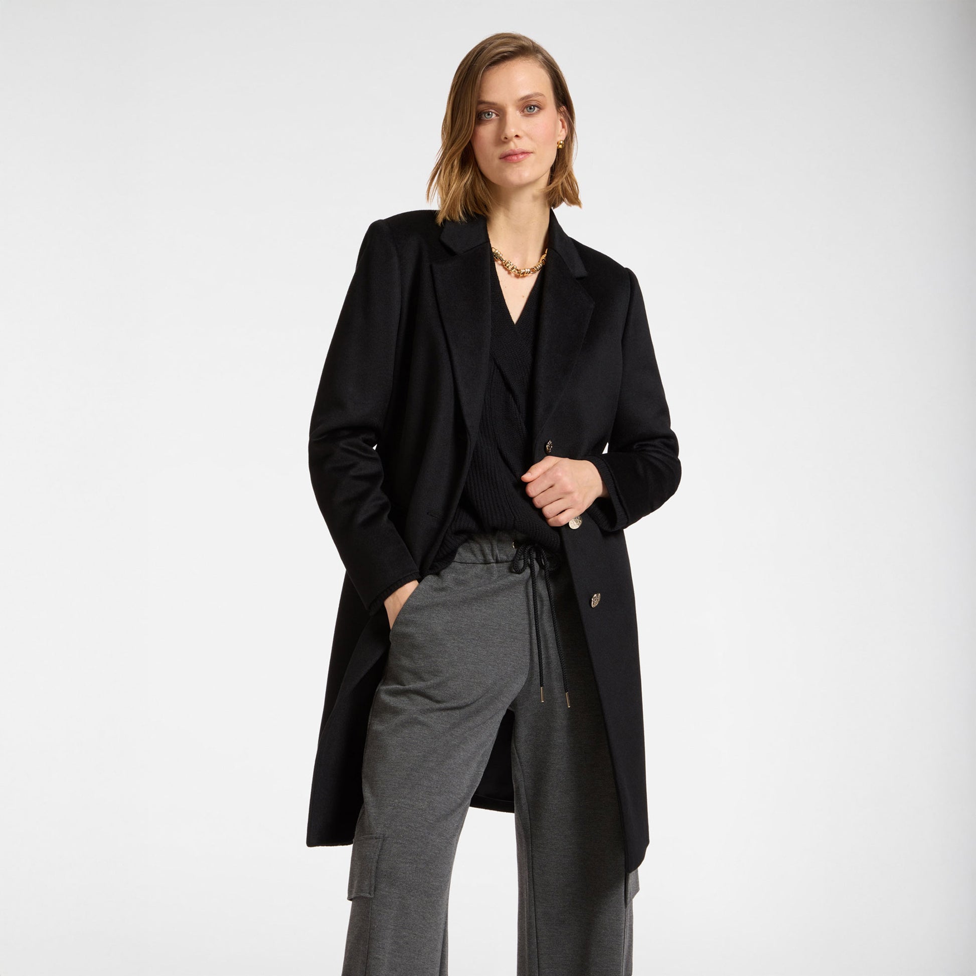 Cappotto in pregiata pura lana con chiusura a tre bottoni e tasche a filetto