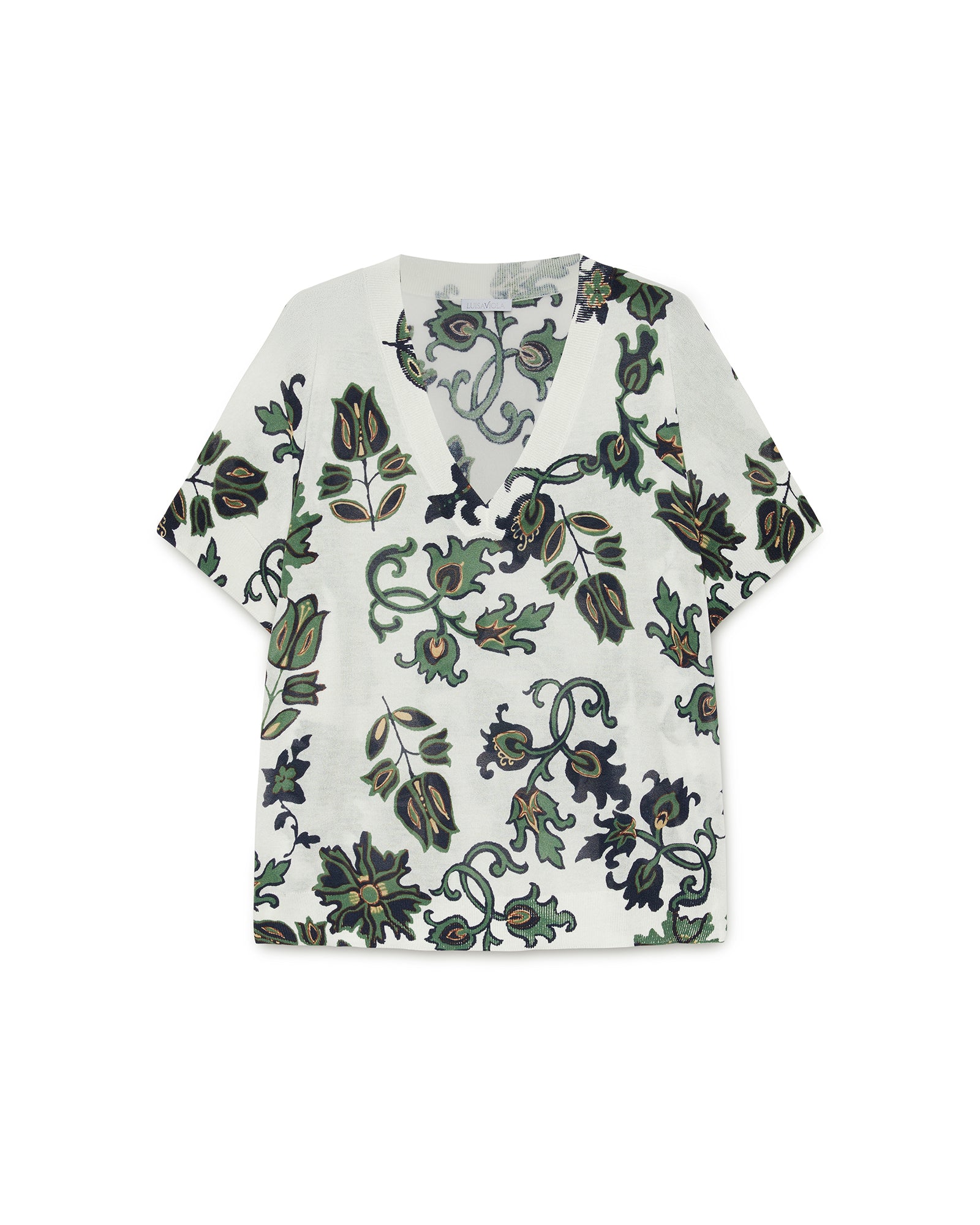 Maglia scollo a v fantasia, Luisa Viola, mezza manica. Fantasia